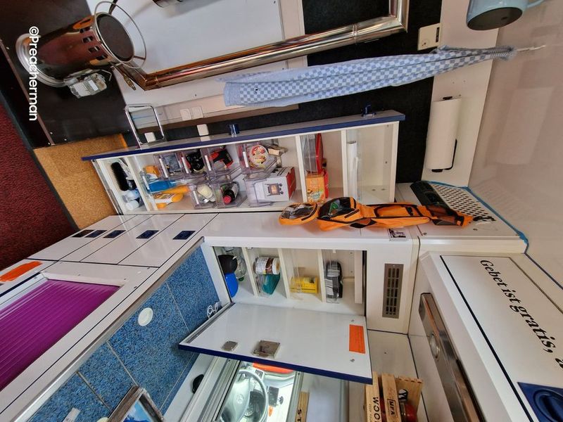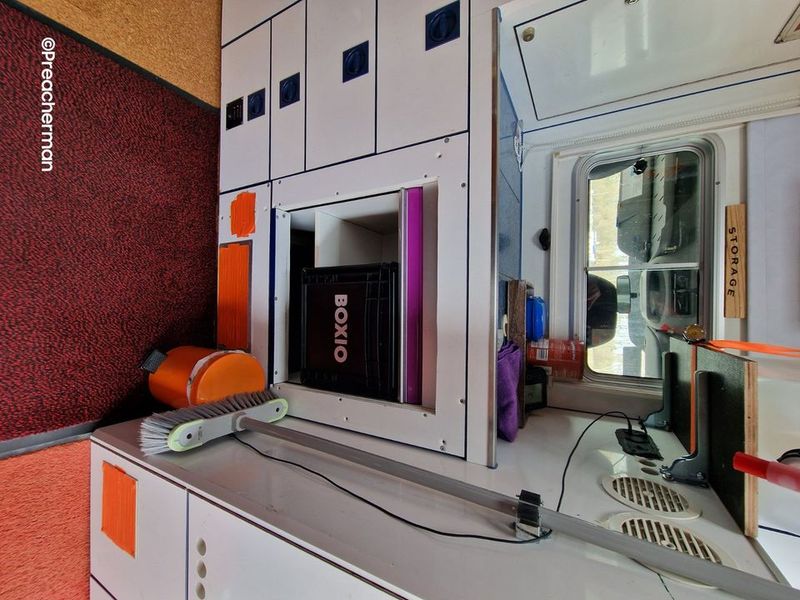 Os móveis interiores também se adaptam perfeitamente ao veículo, pelo que os deixei na parede traseira da cabine do condutor.