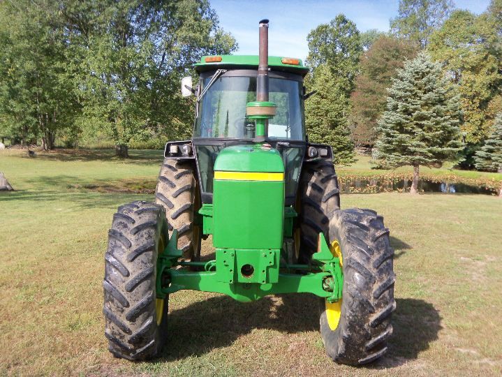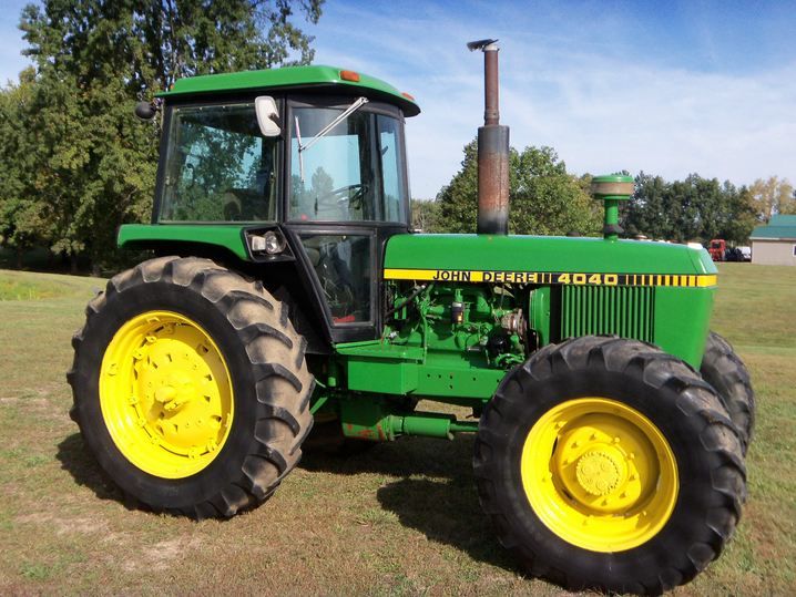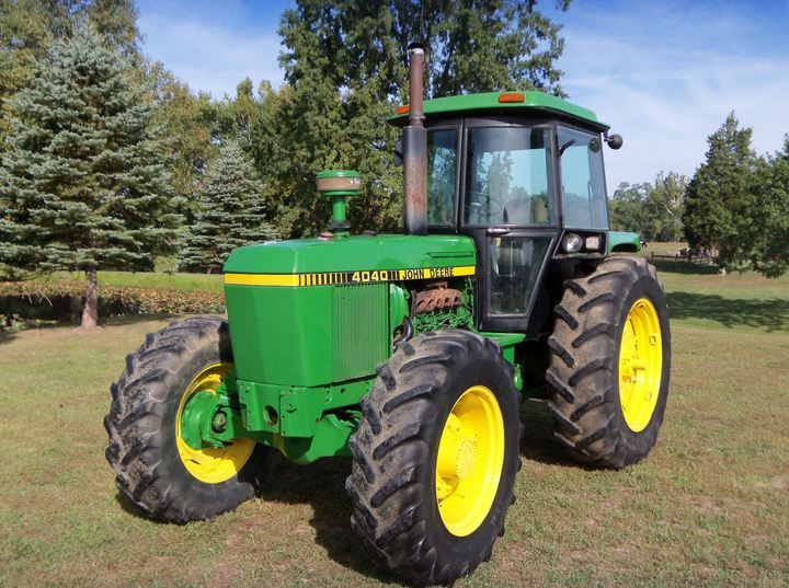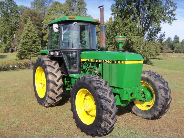 Em leilão está um John Deere 4040 Tractor & Cab. A cabina do trator possui tecnologia de aquecimento e ar condicionado. Possui um motor diesel a aparecer no tacómetro da superfície de trabalho. É tração às 4 rodas. Possui ainda direção assistida, tomada de força 540 e 1000, controlos remotos hidráulicos duplos e suavidade de 3 pontos. Possui uma transmissão de alcance quádruplo. Também possui bloqueio de diferencial. O tamanho do pneu traseiro é de 18,4-38. Também vem com toplink JD original.