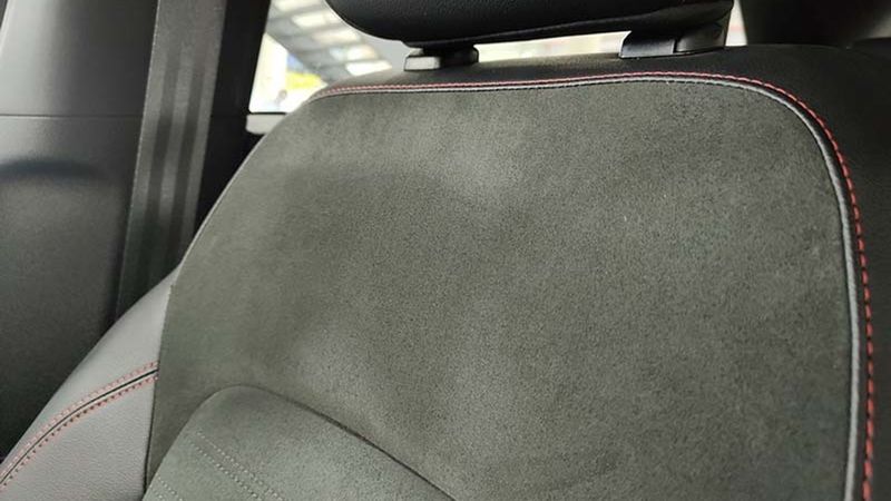 Asientos de tela (material principal) y de cuero sintético (material secundario)