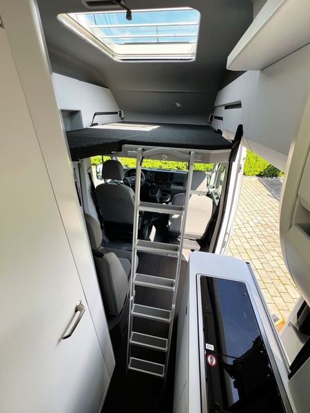 • Cama alta por cima da sala de jantar, incluindo escada de acesso, iluminação e clarabóia panorâmica