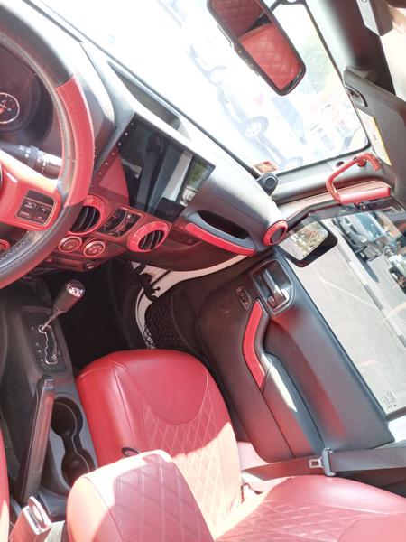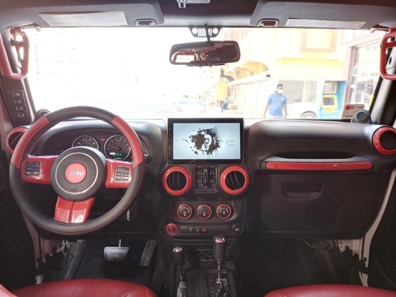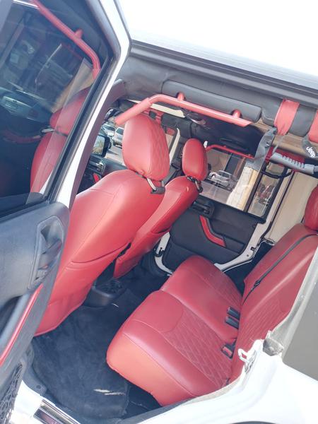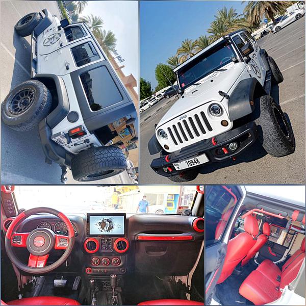 جيب رانجلر 2014 / 4 ابواب وارد . جير اتوماتيك ماشي 65 الف ميل عليه اضافات : رنقات / تواير حجرية / شاشة اندوريد/ روبيكون بمبر امامي و بمبر خلفي/ فندرات/ كشافات امامية LED كشافات/ خلفيةLED /اكزوز / جلد احمر من داخل / ترفيعة 2.5 انش/ جمبينات / كشافات سقف خارجية / اربع ابواب شبك /مطلوب 68 الف
