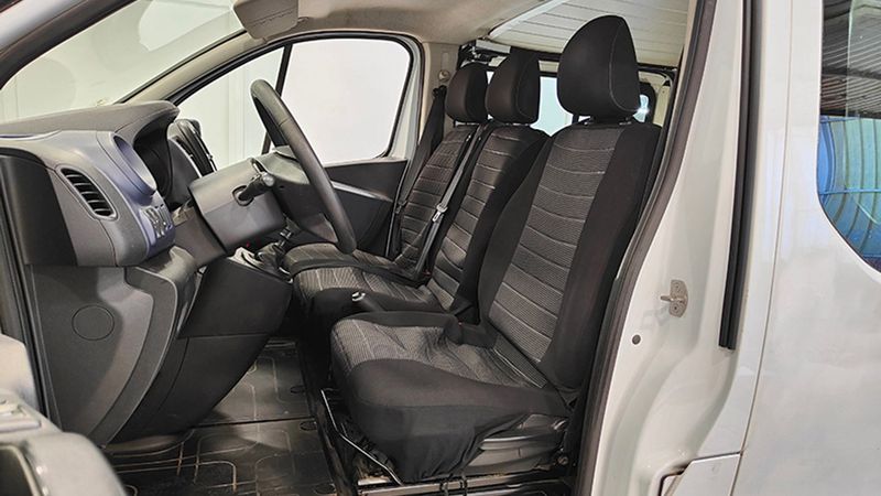 Asiento delantero del conductor individual, ajuste manual en altura y ajuste lumbar manual, asiento delantero del acompañante tipo banco, asiento delantero central tipo banco