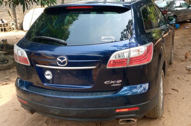 A Clean title Toks, Mazda CX-9 2011 Model, Blue Color, Grand Touring AWD, Sport Utility body style. * With reverse Camera, FM/AM Radio, Bluetooth with 6 Loader Audio CD, Inner roof DVD, V6 Engine. Auto-transmission, Three rows Leather seats, black interior with standard cooling unit. * Lagos clear & Full paid custom duty. Goes for #3.8M. * Slightly negotiable.